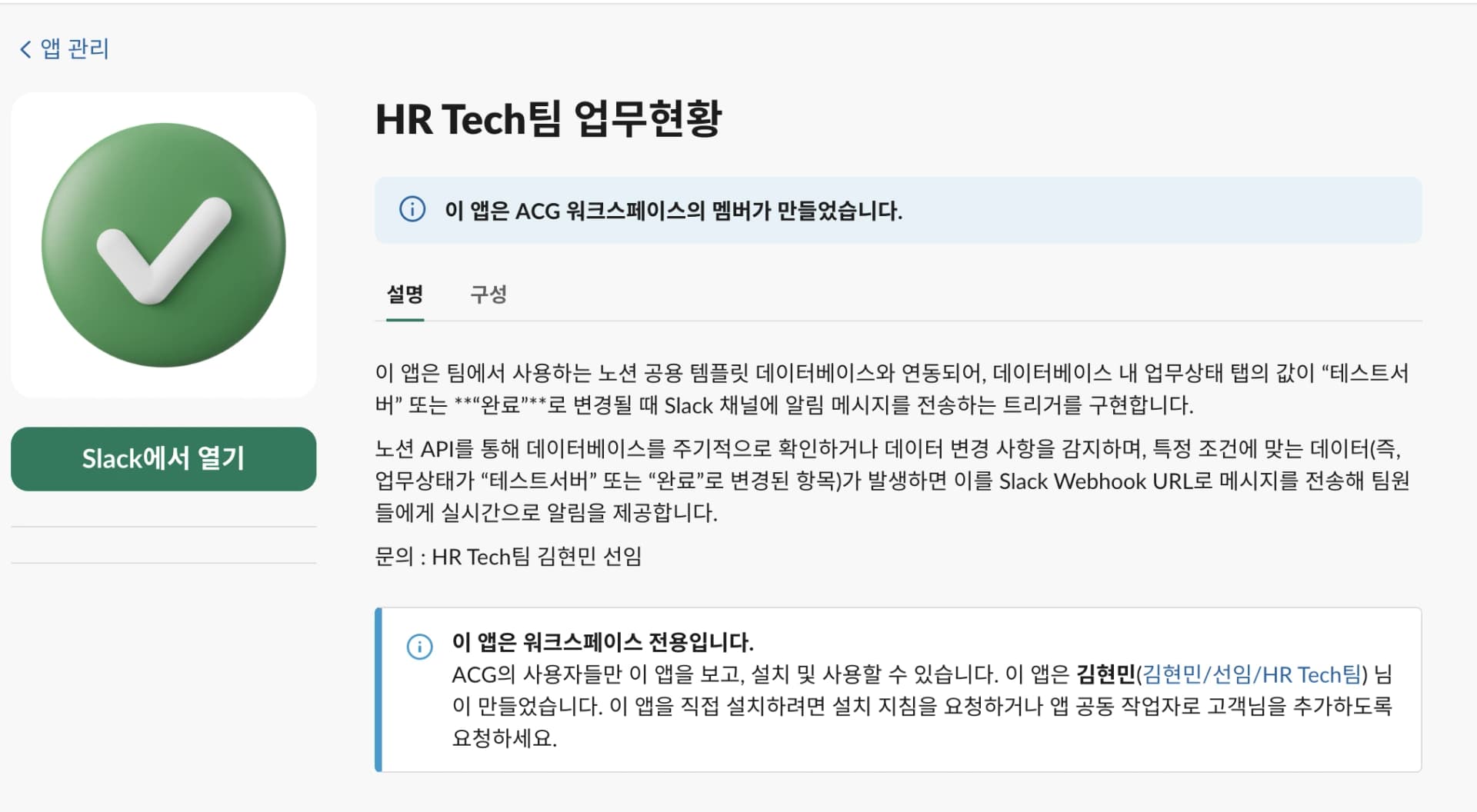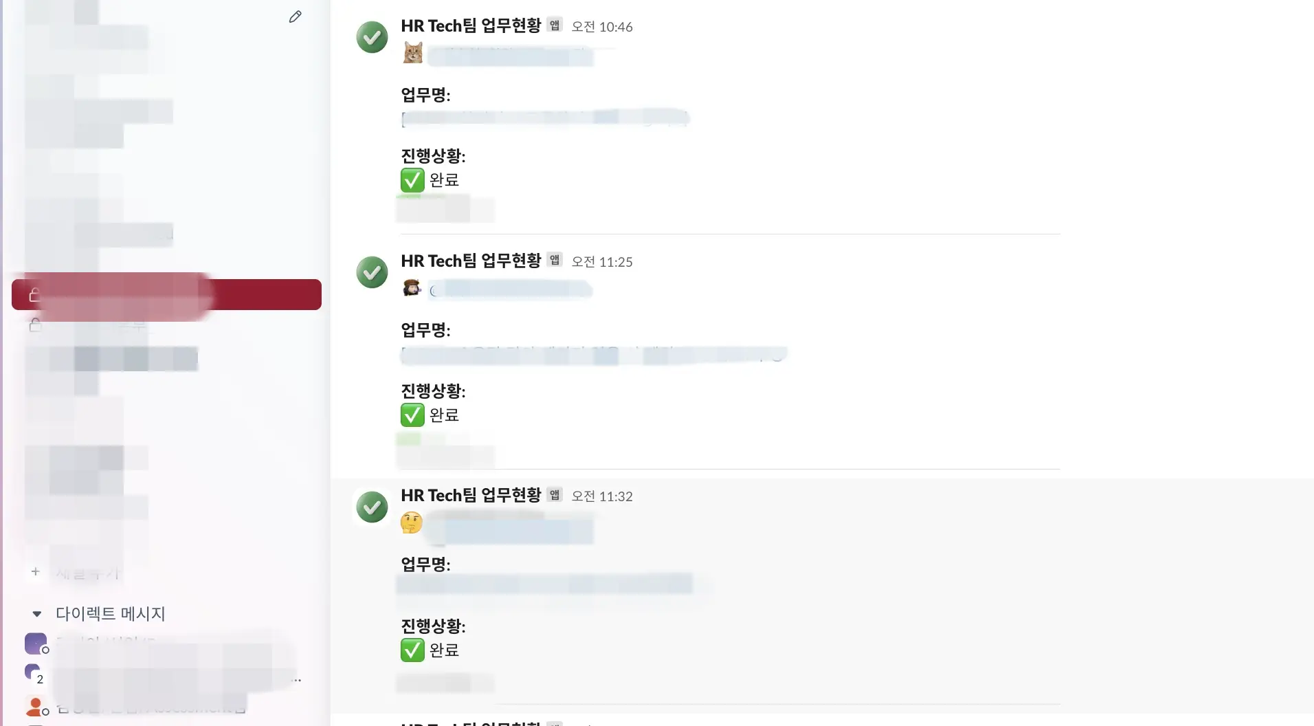 업무 완료 시 Slack 채널로 전송되는 알림