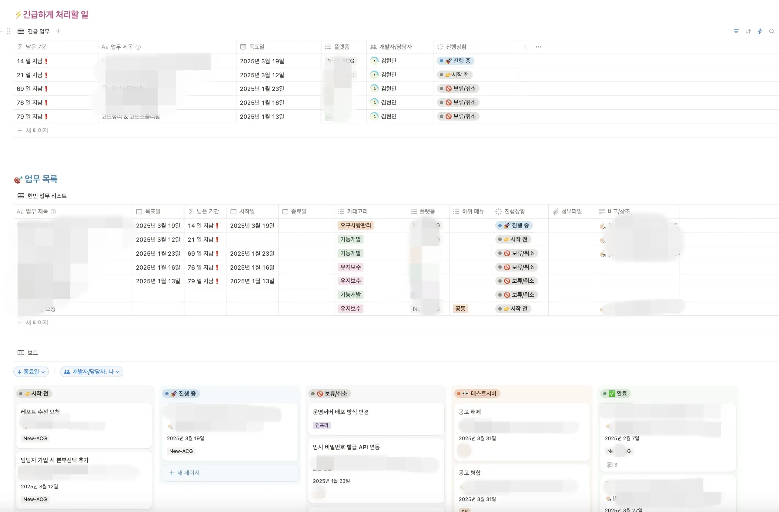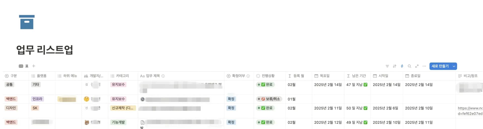 - 아래 '업무 리스트업' 페이지는 전체 DB 테이블을 의미합니다. (팀장님 전용으로 사용되는 테이블)